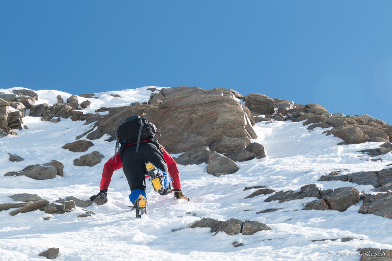 Am nächsten Morgen sind wir zum Gipfel aufgebrochen den wir bereits in frühwinterlichen Verhältnissen vorgefunden haben.